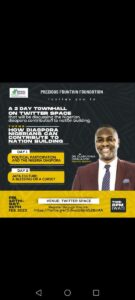 Precious Fountain Foundation invites you to a 2 day online townhall on the Nigerian disapora contribution to nation building.